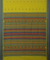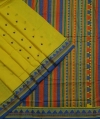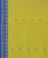 Dongria saree is a hand-woven by a tribe called ‘dongria kandh’ of kalahandi and rayagada district of Odisha. Dongria Kondh textile represents the social and cultural context of their relation with the material culture. Dongria sarees are handwoven and the very bright embroidery work in their pallus. Dongria, a relatively unknown tribe in Orissa are also known for their rustic yet geometric embroidery.Yellow colour dongria handloom cotton saree comes with butti motifs on thebody, lineing design & temple motifs on border and pallu has been designed with lineing design & dongria motifs. Yellow colour blouse piece attached with this saree.