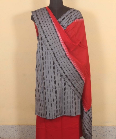 Gray red colour handwoven cotton Suit Piece