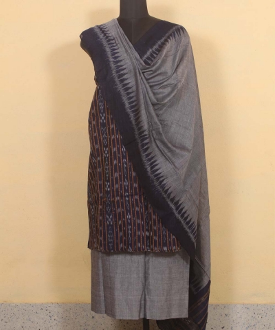 Navy blue gray colour handwoven cotton Suit Piece