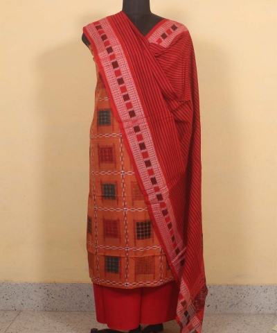 Orange red colour handwoven cotton Suit Piece