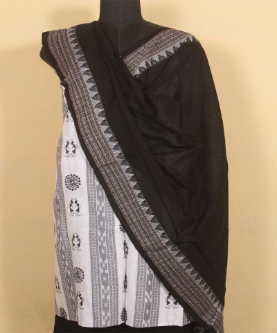 White black colour handwoven cotton Suit Piece