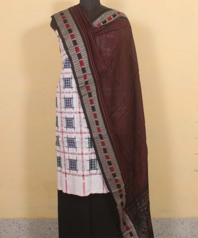 White black colour handwoven cotton Suit Piece